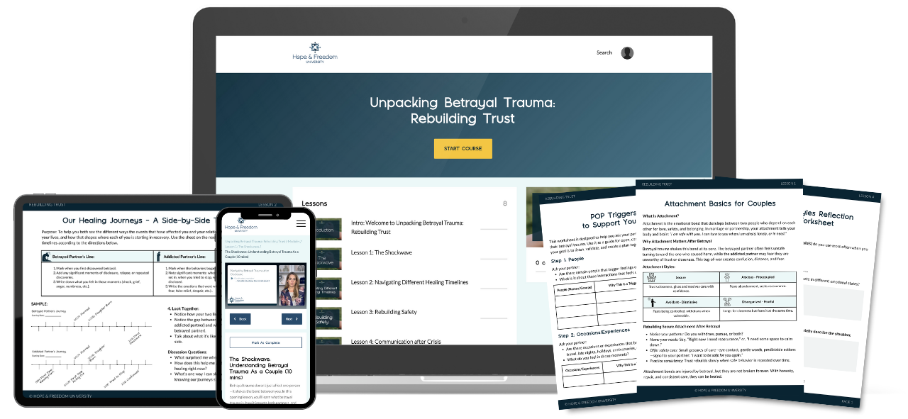 Unpacking Betrayal Trauma: Rebuilding Trust is a mini-course designed to help couples in the survival phase of recovery understand the impact of betrayal, repair what has been broken, and begin rebuilding a relationship rooted in safety, truth, and connection.
